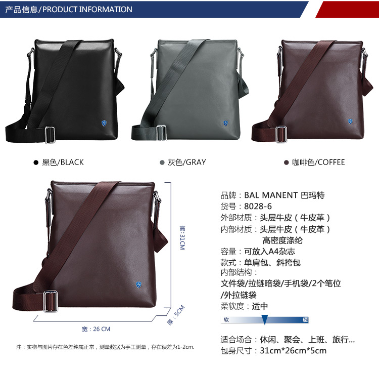 单肩包, 男士大包
